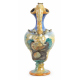 Versatoio in maiolica dipinta con scena di battaglia, ansa zoomorfa con attacco a mascherone, base circolare. Urbino, sec. XIX. Alt. cm32 (abrasioni)