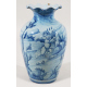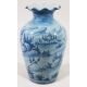 Vaso in maiolica a fondo azzurro dipinto in blu con paesaggio e putti alati con spighe. Savona, fine sec. XIX. Alt. cm29 (scheggiatura)