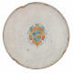 Alzata in maiolica a fondo bianco dipinta con stemma araldico centrale. Faenza, sec. XVII. Diam. cm25 (mancanze al bordo)