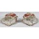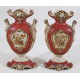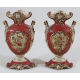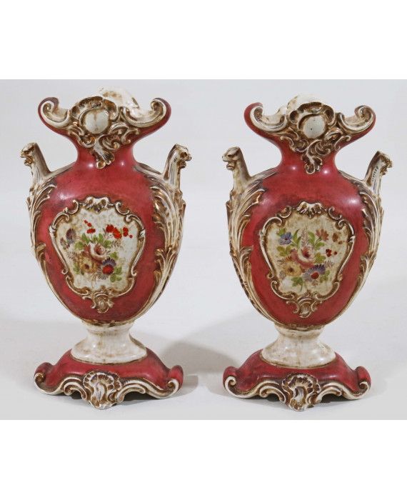 Coppia di vasi in porcellana a fondo arancio e bianco, decorata in oro e dipinta con fiori, firmati sul fondo Zaccagnini. Alt. cm32