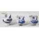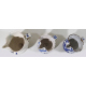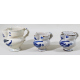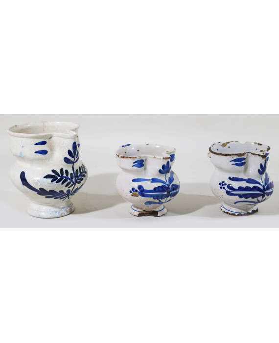 Lotto di tre brocche similari in maiolica a fondo bianco dipinte in blu con rami fioriti. Genoa, sec. XIX. Alt. cm19/15(2) (scheggiature e mancanze)