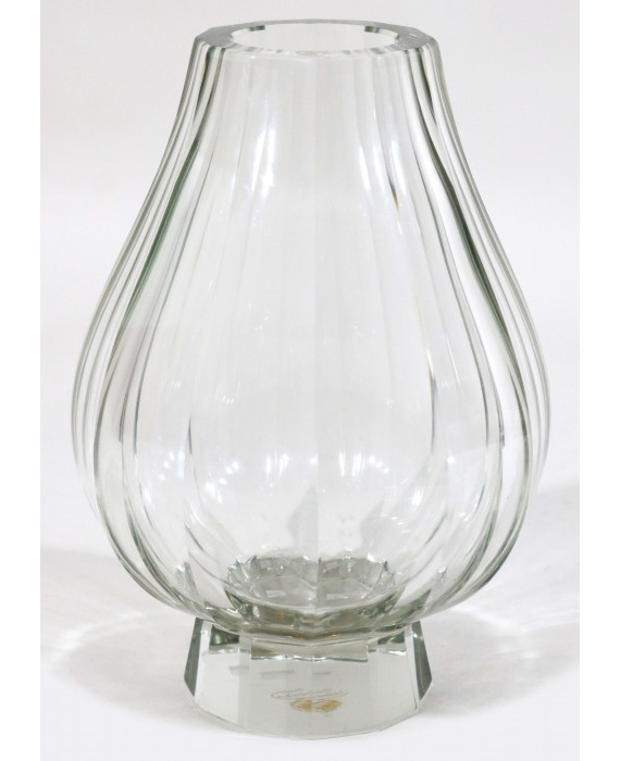 Vaso in cristallo a corpo costolato, marcato sul fondo Moser. Alt. cm27