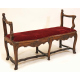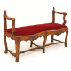 Coppia di panchette a due posti in legno di noce, sei sostegni a voluta raccordati da traverse, braccioli mossi, seduta rivestita in velluto. Italia, periodo del Direttorio, fine sec. XVIII.