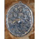 Coppia di placche ovali in argento sbalzato raffiguranti Sant'Agata, montate su supporto in velluto. Bolli Napoli per gli oggetti sacri, sec. XIX, argentiere De Michele Luigi (attivo nella metà del sec. XIX). cm11x9