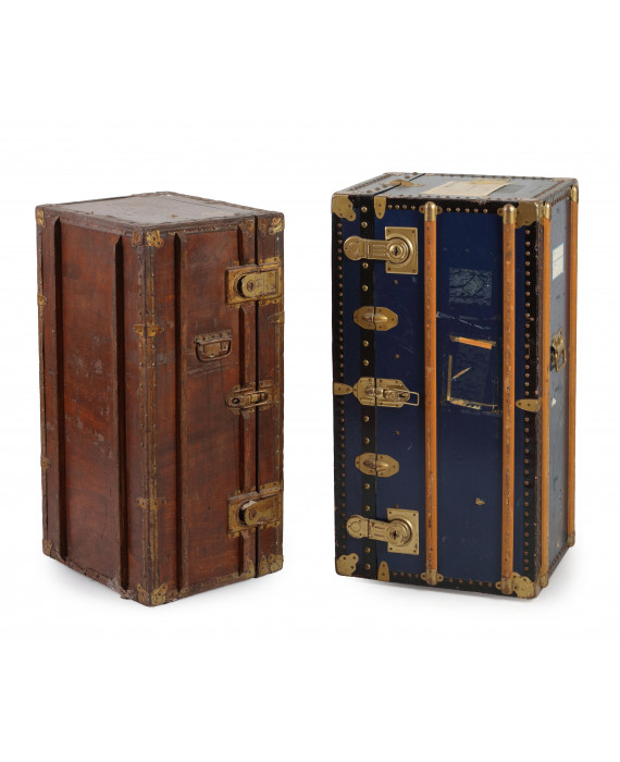 Lotto di due bauli da viaggio con cassetti interni, appartenuti all'attrice Adriana Asti. cm93x44x51/88x50x42 (difetti)