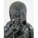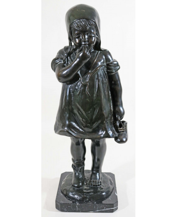 De Matteis (sec. XX). Bambina con scarpa. Fusione in bronzo brunito su base in marmo, firmata sul retro. Alt. cm64