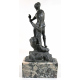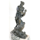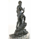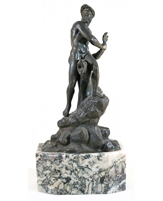 Fusione in bronzo patinato raffigurante tritone con delfino su conchiglia, con base in marmo. italia, sec. XIX. Alt. cm52
