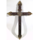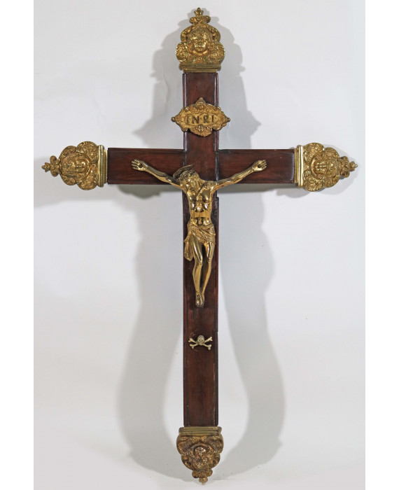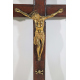 Crocifisso con croce in legno di noce e Cristo ed applicazioni in bronzo dorato. cm76x49