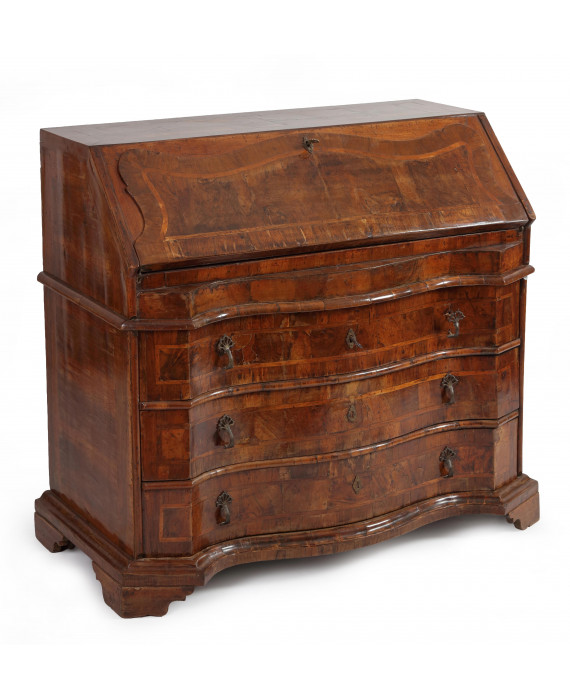 Ribalta lastronata in legno di ciliegio, calatoia con all'interno due cassettini, uno sportello centrale ed un segreto, tre cassetti mossi inferiori. veneto, sec. XVIII. cm98x115x56