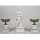 Lotto di un gruppo in terraglia raffigurante Il Ratto delle Sabine del Giambologna ed una coppia di alzate in marmo bianco, a base ottagonale, con coppe in bronzo decorate con tralci di ereda. Italia, sec. XIX. Alt. cm45 (mancanze alle dita dei personaggi ed abrasioni); Alt. cm23 (difetti)