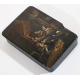 Tabacchiera in legno ebanizzato e dipinta raffigurante scena di osteria alla maniera di Adriaen van Ostade, o Adriaen Hendricx (10 dicembre 1610 – 2 maggio 1685), all'interno antiche iscrizioni "La cabane flamande ( Ostade)"; -6543- Stobwasser Fabrik in Braunschweig, con chiavetta. cm9x6,5