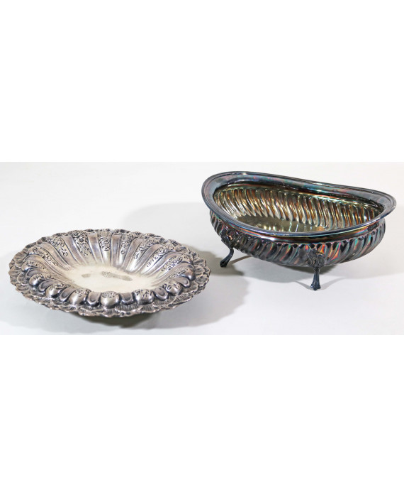 Lotto di due centrotavola in argento 800 con corpo baccellato. Peso tot. gr. 1300