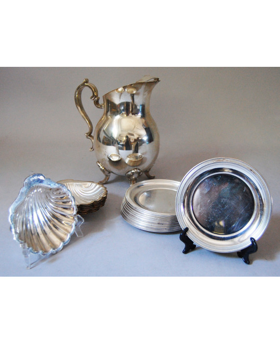 LOTTO PIATTINI E BROCCA METALLO ARGENTATO