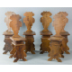 Gruppo di sei antichi sgabelli in legno di noce con sostegni ad asso di coppe.
