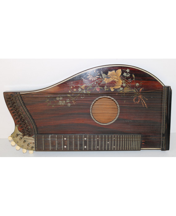 Citara in legno di palissandro decorata con ramo fiorito. cm56x28 (difetti)