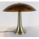 Lampada da tavolo con fusto in metallo satinato e paralume in plexiglass fumè. Design anni '80. Alt. cm44