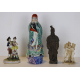 Lotto di quattro statuine in materiali diversi: una in terraglia raffigurante samurai, una in porcellana raffigurante saggio orientale, una in alabastro raffigurante le tre grazie ed una in porcellana di Capodimonte raffigurante scena galante. cm21/28/12/15 (restauri ad una)