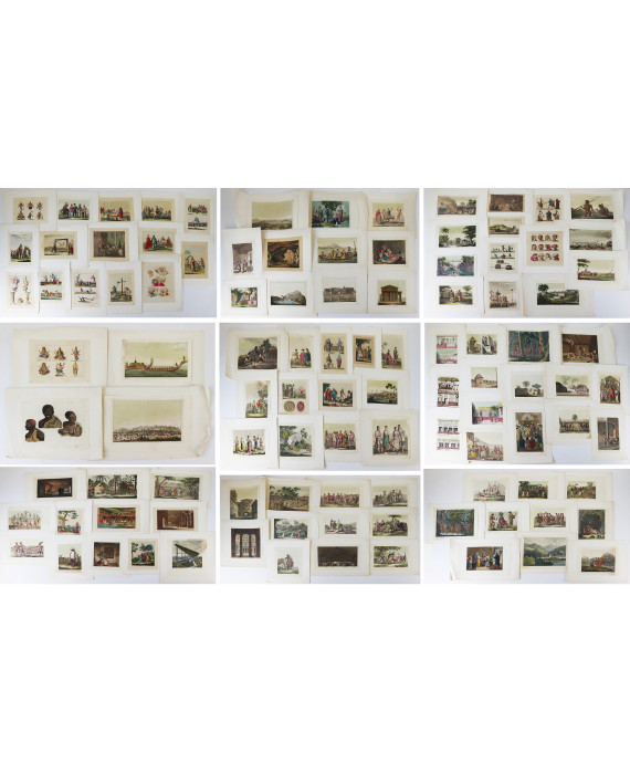 Lotto di 46 stampe a soggetto vario con personaggi e paesaggi, di diverse dimensioni (difetti)
