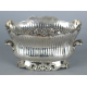 Elegante centrotavola biansato in argento 800, corpo costolato, bordo e base lavorati con serti vegetali e fiori. cm18x30x20. Peso gr. 1515