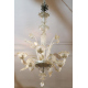 Lampadario a sei luci in vetro trasparente di Murano (lievi difetti, mancante di 3 foglie a ricciolo)