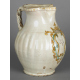 Grande versatoio in maiolica dipinta con cartiglio a volute e scritta Vito centrale, corpo baccellato ed ansa a tortiglione. Italia centrale, sec. XVIII. Alt. cm34 (restauri)