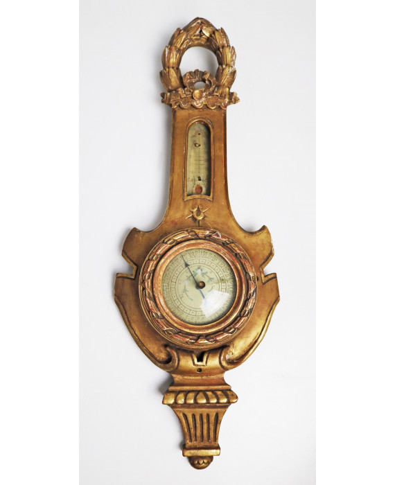 Barometro in legno dorato ed intagliato, con quadrante dipinto. Alt. cm50 (lievi difetti e mancanze)