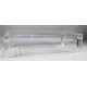 Tavolo da salotto, base in plexiglass trasparente con quattro sostegni piramidali, piano in cristallo. cm40x150x80