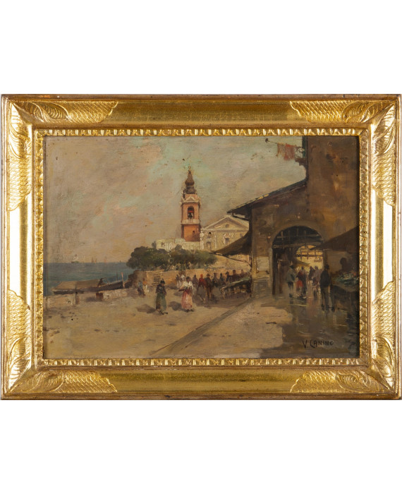 Firma firma in basso a destra, sul retro riferimento numerico n.13Tecnica: Olio su tavolaDimensioni: cm24x35
