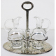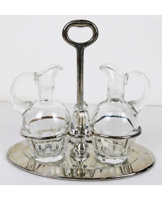 Oliera in argento 800, completa di due ampolle in vetro con tappo. Peso dell'argento gr. 265
