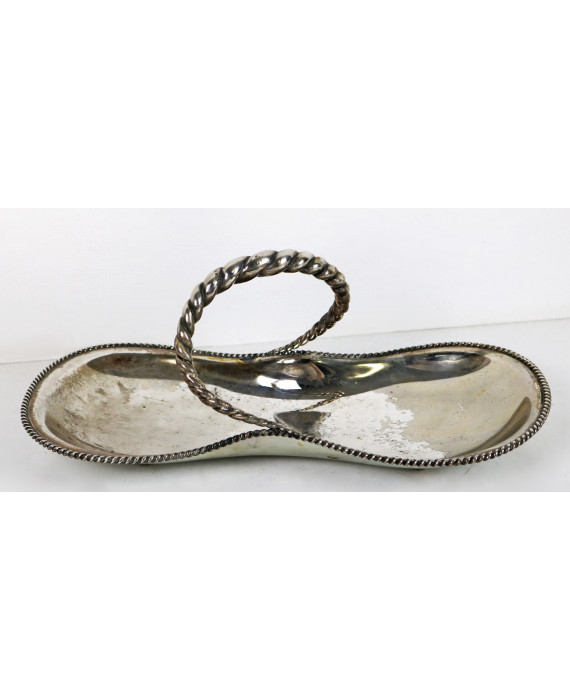 Elegante centrotavola in argento 925 con presa a tortiglione e bordo cordonato. Manifattura Opitz Francoforte, anni '40. Peso gr. 830