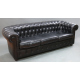 Divano Chester, a tre posti, in pelle nera. (usure del tempo)
