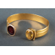 Bracciale rigido in oro giallo 18 Kt con quarzo citrino e corniola con profilo di guerriero. Peso gr.24