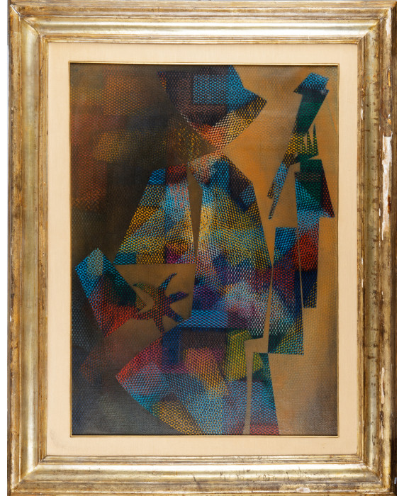 Arlecchino con falcone, 1956, con cornice. allegata autentica su foto dell'Archivio Cagli con autentica n. 00154 e n. di archivio 56 TM 24