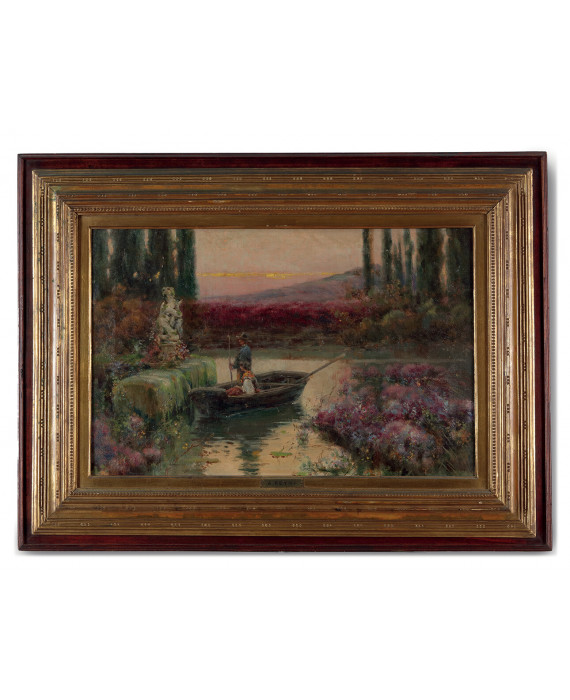 Firma firma in basso a destra e su placchetta in metallo applicata sulla cornice, al verso studio a matita raffigurante personaggi ed etichetta di inventario "15",",",",N"
