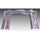 Camino in marmo brecciato rosso lavorato con volute e drappi. cm126x170 (scheggiature)