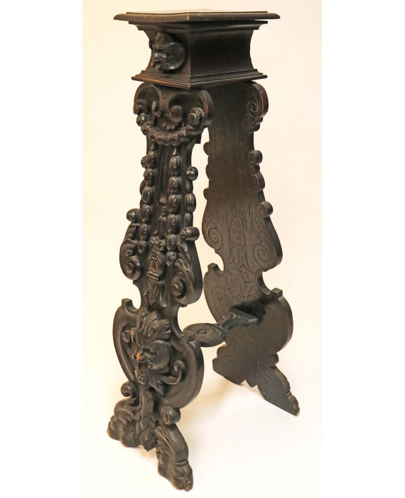 Altana in legno ebanizzato ed intagliato con mascheroni e serti vegetali. Italia, fine sec. XIX. Alt. cm137 (piccole mancanze)