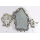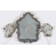 Trittico composto da una specchiera e due applique ad una luce in vetro trasparente di Murano con specchi incisi. cm60x46; cm26x21 (2) (lievi difetti)