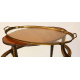Elegante tavolo servomuto impiallacciato in legno di mogano, piano superiore con vassoio movibile in bronzo dorato con fondo a vetro, piano inferiore con fondo a specchio, sostegni e gambe mosse, applicazioni in bronzo lavorato a serti vegetali. Francia, periodo Napoleone III. cm92x97x61 (piccole mancanze)