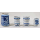 Lotto di quattro albarelli in maiolica a fondo bianco dipinta in blu tra cui uno di manifattura di Laterza della prima metà del sec. XVIII ed una coppia di manifattura genovese del sec. XIX. Alt. cm23/18/15 (mancanze al collo dell'albarello Laterza e abrasioni e scheggiature agli altri)