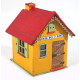 Casa dei sette nani giocattolo in legno dipinto completa di personaggi. cm21x17x18