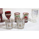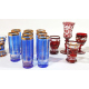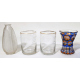 Lotto di un vaso in vetro trasparente firmato sul fondo Sabino France e venti bicchieri in cristallo e vetro policromo, di diversa manifattura (lievi scheggiature)