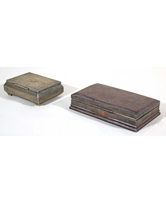 Lotto di due scatole in argento 800 e 925. Peso argento 800 gr. 220; peso argento 925 gr. 400 (all'interno della scatola in argento 925 è presente una barretta in metallo lungo il perimetro)