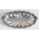 Elegante centrotavola in argento 800 a corpo baccellato con anse a voluta. Peso gr. 1540