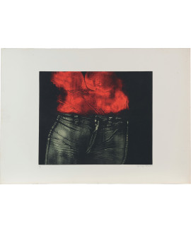 Serie di tre litografie su carta giapponese: Soleil rouge et ballons multicolores; Taches de rousseur (da la Mémorire Eléméntaire); Le Point de Non- Retour. Alexander Calder ( Lawton, Pennsylvania, 1898 - New York, 1976 ). Studia ingegneria meccanica. Famoso per le sculture di arte cinetica, le sculture mobili, ma anche per le opere pittoriche, le litografie, e la progettazione di giocattoli, arazzi, tappeti. La famiglia dell'artista, gli trasmette la predisposizione all'arte e anche lui, come suo nonno, realizza pregevoli opere scultoree e monumentali. Appena decide di percorrere la carriera artistica, si trasferisce a New York e si iscrive alla scuola d'arte Art Students League of New York. Nel 1926 si reca a Parigi e inizia a produrre giocattoli, che presenta al Salon des Humoristes. Affascinato dal mondo circense, realizza un circo in miniatura con del filo metallico, spago, gomma e oggetti di recupero, pensato per essere trasportato in valigia, viaggia con la sua mini opera, tenendo spettacoli improvvisati, ispirati a quelli reali. Con l'avvento dell'avanguardia parigina, il Circo Calder, diviene famoso, tanto che l'artista inizia a far pagare il biglietto per la visione della rappresentazione. Tornato in America, progetta giocattoli in legno, prodotti in serie. Nel 1929 espone in una galleria parigina, opere realizzate con il filo, le sculture di filo, e conosce importanti artisti, esponenti dell'avanguardia, tra cui Mirò, Arp e Duchamp. Dopo una visita allo studio di Mondrian, resta piacevolmente impressionato dall'astrattismo e decide di dedicargli alcune opere. Dopo una serie di esperimenti artistici, approda alla scultura cinetica, messa in moto tramite manovelle e pulegge. Nel 1931realizza delicate sculture che sfruttano il movimento del vento e delle correnti d'aria. Progetta allestimenti scenici teatrali e durante gli anni Cinquanta, raggiunge l'apice della carriera: retrospettive, musei, riconoscimenti, premi e mostre importanti.