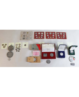Lotto di numerose reliquie fra cui: teca in metallo contenente diciotto reliquie (S. Pietro, S. Paolo, S. Andrea, S. Tommaso, S. Giacomo minore, S. Filippo, S. Bartolomeo, S. Matteo, S. Simone e S. Mattia apostoli, S. Gregorio I papa, S. Tommaso d'Aquino, S. Bernardo abate, S. Camillo de Lellis, S. Vincenzo de Paoli, S. Giuseppe da Leonessa, S. Alfonso Maria da Liguori e frammento della colonna della flagellazione), con attestazione di autenticità datata 23 agosto 1839; teca in metallo con reliquia della colonna della flagellazione e di S. Giovanni battista, con attestazione di autenticità datata 20 ottobre 1839; teca in metallo con reliquie dei santi Cosma e Damiano, con attestazione di autenticità datata 20 ottobre 1839; teca in metallo con reliquia del S. Sepolcro della B. V. Maria, con attestazione di autenticità datata 30 gennaio 1865; teca in metallo con reliquie di "cinque santi novelli", con attestazione di autenticità datata 20 ottobre 1839; teca apribile in metallo con appiccagnolo contenente reliquia del sacro velo della B. V. Maria, con attestazione di autenticità datata 20 giugno 1859; teca in metallo dorato contenente cinque reliquie (S. Antonio da Padova, S. Giuseppe da Copertino, S. Pasquale Baylón, S. Elisabetta di Portogallo e S. Rosa da Viterbo), con attestazione di autenticità datata 20 maggio 1878; teca in metallo argentato con sportellino contenente reliquia del sacro legno della Santa Croce, con attestazione di autenticità datata 17 maggio 1857; teca in metallo con coperchio contenente tre reliquie (S. Ugo confessore, S. Silvestro abate e B. Giovanni da Bacoli), con attestazione di autenticità datata 15 dicembre 1829; teca in metallo con le reliquie di S. Benedetto e S. Matteo, con custodia in cartonato; teca in metallo con le reliquie di S. Gioacchino e S. Anna, con custodia in cartonato; teca in metallo con la reliquia di S. Giovanni Giuseppe della Croce, con custodia in cartonato; due teche con reliquia della S. Croce e altra non identificata, teca e cornice in filigrana in argento con reliquia di S. Pacifico, due medaglie, un anello, un piccolo ciondolo con pietra azzurra, con custodia in cartonato, altre dieci reliquie contenute in cartigli (olivo di Getsemani, tunica di S. Francesco e capelli di S. Chiara, capelli di S. Francesco Andronico, paglia dello stramazzo su cui fu collocato il s. corpo di Pio IX nei funerali solenni in Roma, S. Alfonso Liguori, S. Veronica cappuccina, coperta del letto in cui morì papa Pio IX, abito della B. Veronica cappuccina, SS. corporale, foglia del roseto di S. Francesco d'Assisi).